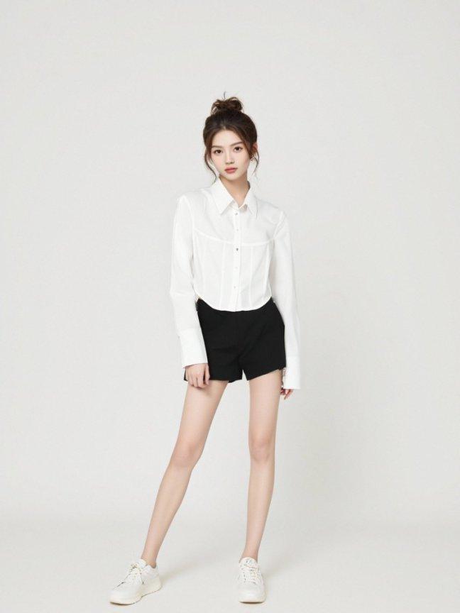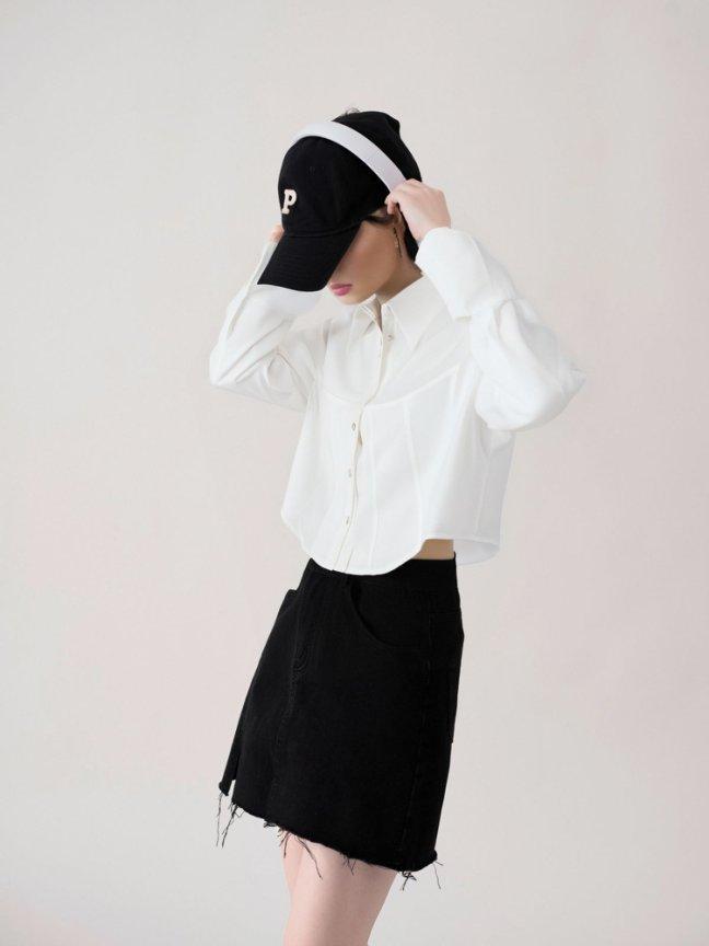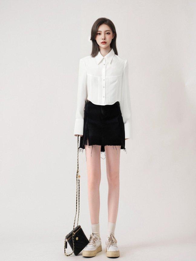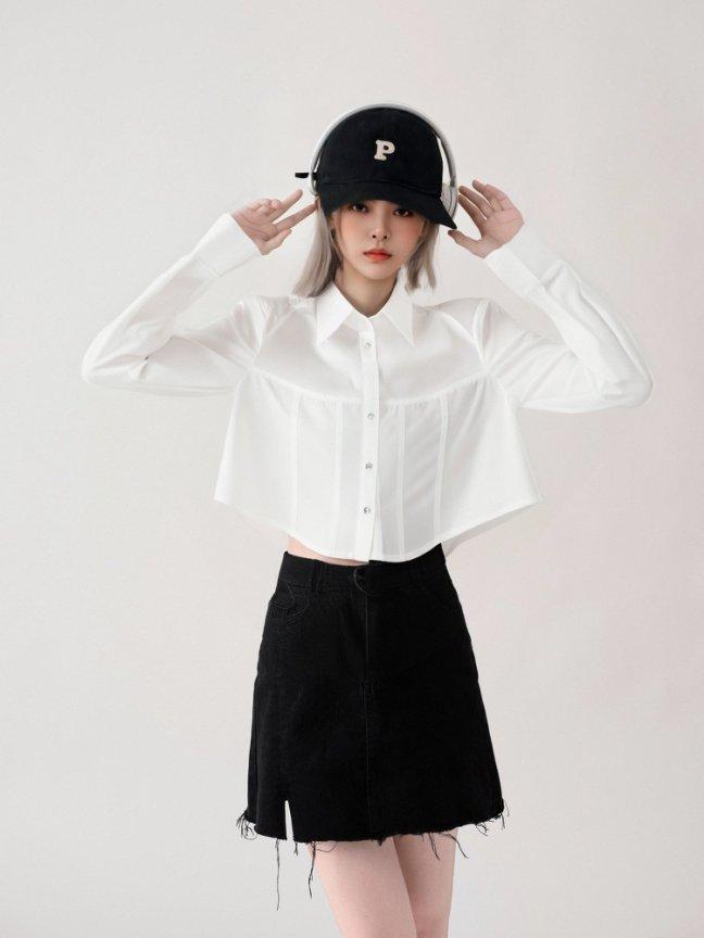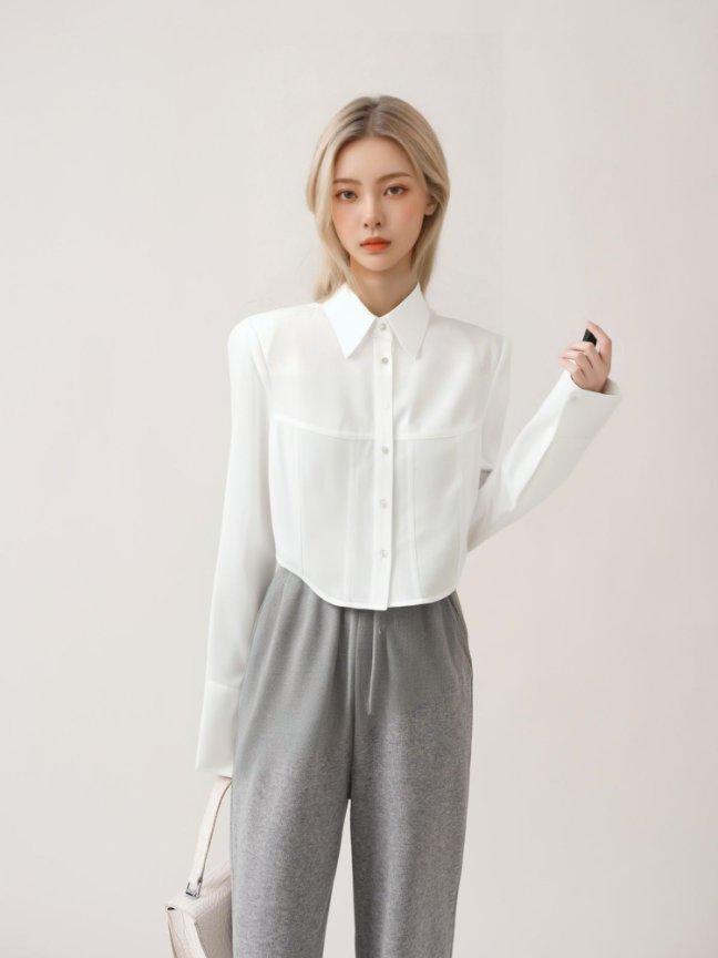 [M31N] White long-sleeved shirt with petals, simple and elegant for women 10011