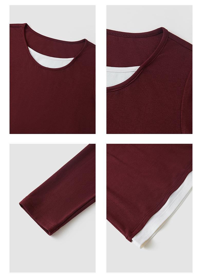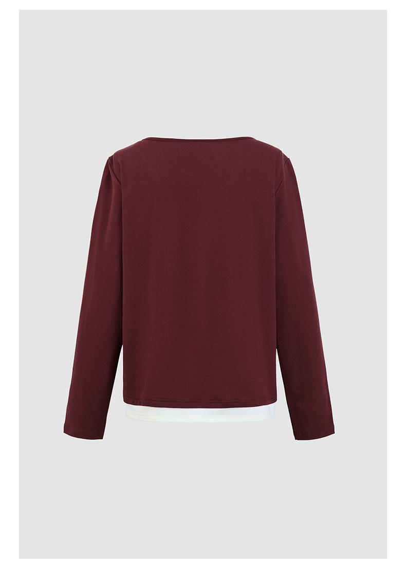 [MEIN] URBANBurgundy Loose Layered-Look Long-Sleeve T-Shirt for Women 92011